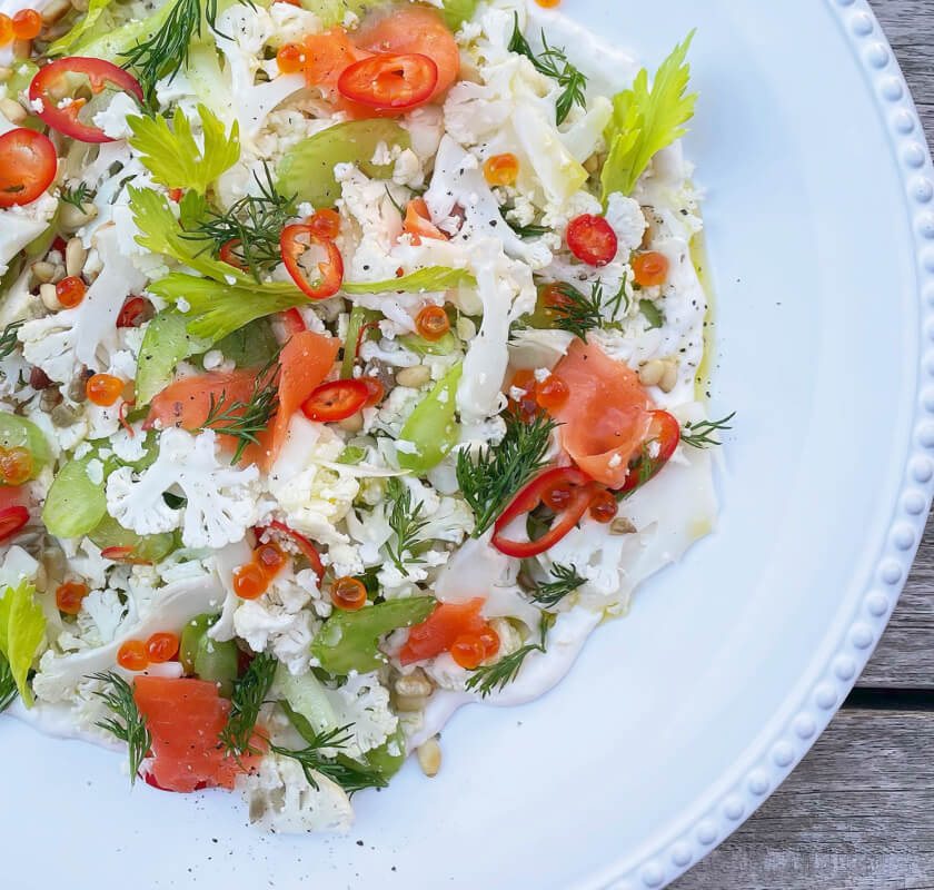 So we stocked up a lot of vegetables. I was making a lot of really interesting salads and just pushing the boundaries with vegetables, making them the star of the show. [For example] I grabbed a whole head of cauliflower and experimented with cooking it as a whole head, cutting it into “steaks” and even shaving it raw on a mandoline.