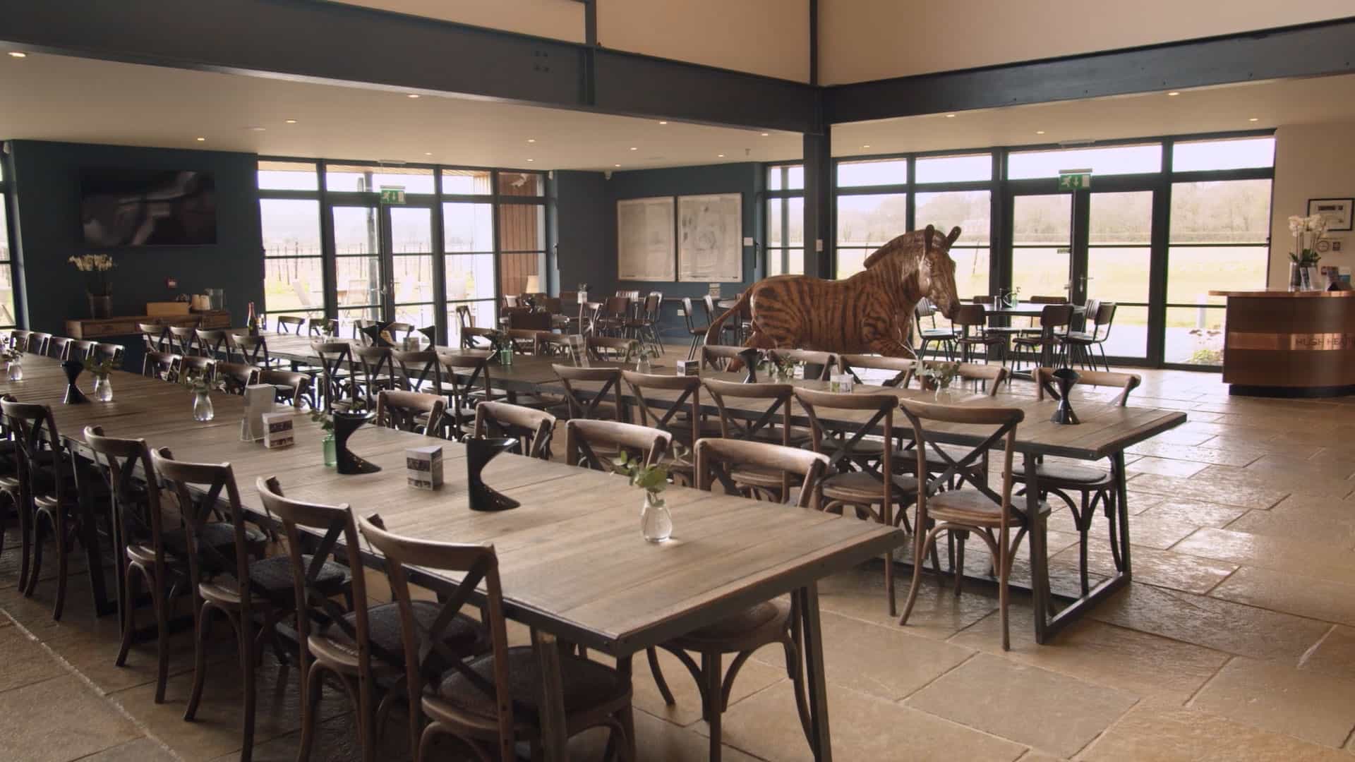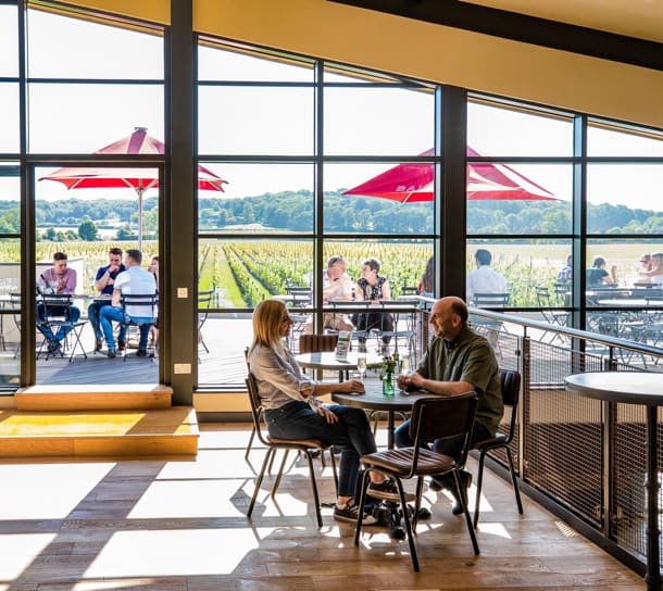 Tours of Hush Heath include stops at the estate’s vineyard, apple orchard, woodlands, and winery, and end in the tasting room, where visitors can sip a glass of sparkling wine on the patio, from, April-October.